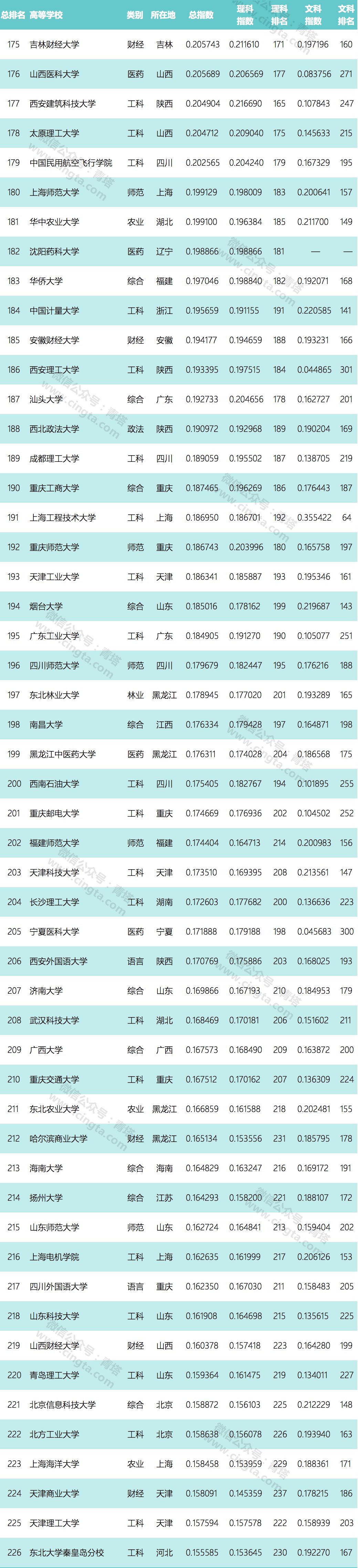 最后来看一看华东师范大学邝春伟副教授领衔的研究团队发布的这份榜单(“—”表示该校没有录取文科学生,只招理科学生;完整数据和按照理科/文科单独整理的排名可在青塔网(www.cingta.com)上查看):